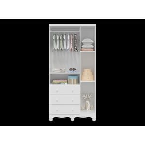O Armário Tedy New 3 Portas é um produto 100% MDF e possui pintura atóxica. Sua estrutura é fabricada em chapa de 12 mm e seus pés são injetados em plástico de alta resistência. Os puxadores são também em plástico. Os cabideiros são metálicos e suas gavetas possuem corrediças apoiadas metálicas.