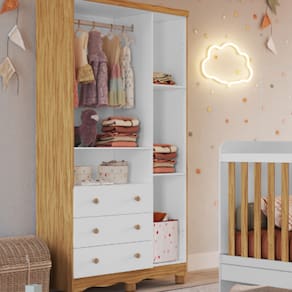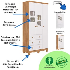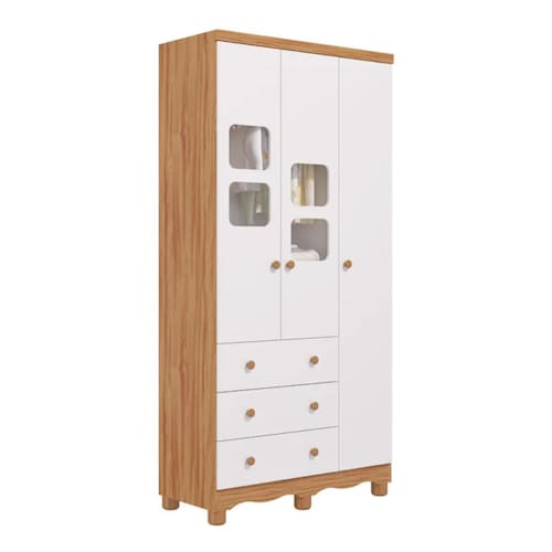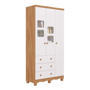 Guarda Roupa Infantil Peroba Uli 3 Portas e 3 Gavetas Cor Branco com Amendoa, referencia 4946.87, com portas com PETG cristal, puxadores em ABS, cabideiro metálico, 2 opções de rodapé, corrediças telescópicas, 100% MDF e sistema antitombamento. É a combinação perfeita de funcionalidade e estilo, projetado especialmente para atender às necessidades dos mais jovens. Com um design moderno e encantador, ele se destaca pela sua praticidade e beleza, sendo ideal para organizar roupas e acessórios de forma eficiente. Com um design que une funcionalidade e estética, é perfeito para quartos infantis. Seu acabamento em branco com amendoa proporciona um ambiente iluminado e alegre, enquanto as linhas suaves garantem segurança e conforto para as crianças. O espaço interno é amplamente aproveitado, permitindo que você organize tudo com facilidade. Ele é feito com materiais de alta qualidade, garantindo resistência e durabilidade e um produto que acompanhará o crescimento do seu filho, mantendo-se funcional e bonito ao longo dos anos. As portas e gavetas oferecem um espaço ideal para guardar roupas, brinquedos e outros itens, ajudando a manter o ambiente sempre arrumado. Dessa forma, seu filho poderá aprender desde cedo a importância da organização.
