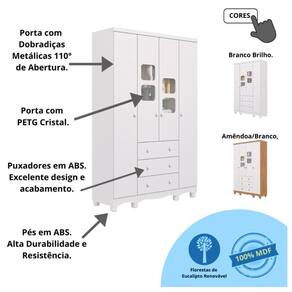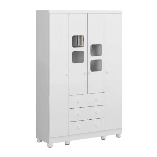 Guarda Roupa Infantil Peroba Uli 4 Portas e 3 Gavetas Branco
