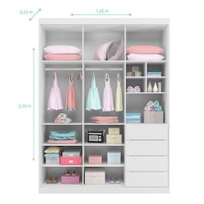 O Guarda-Roupa Pietra é delicado e cheio de detalhes. O Guarda-Roupa é uma peça muito importante para o quarto e para montar o visual perfeito, esse modelo é uma ótima opção. Ele possui 3 portas e 4 gavetas com compartimentos internos para roupas e objetos em geral ficarem organizados de maneira prática para o dia a dia.