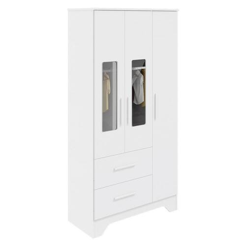 ESPECIFICAÇÕES: Estrutura em MDF Pintura UV atóxica 3 Portas Dobradiças metálicas Detalhe em 2 portas com janelas PETG Cristal/Acrílico Cabideiro metálico Prateleiras 2 Gavetas Corrediças telescópicas Suporta até 4Kg em cada gaveta Puxadores em MDF revestidos 2 Opções de rodapés: um usinado (torneado) e outro reto Amplo espaço interno