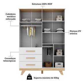 O Guarda-Roupa Infantil Retrô 4 Portas com Janelas e 3 Gavetas é a escolha ideal para quem busca charme e organização no quarto infantil. Produzido em MDF com pintura UV atóxica, oferece 4 portas, sendo duas com janelas em PETG Cristal/Acrílico que trazem leveza ao visual. Internamente, possui cabideiros e prateleiras que facilitam a organização das roupinhas e acessórios, além de 3 gavetas com corrediças telescópicas, que suportam até 4kg cada. Os puxadores em MDF revestidos e os pés no estilo retrô completam o design funcional e encantador do móvel.