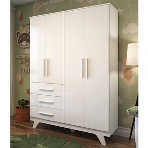 O Guarda-Roupa Infantil Retrô 4 Portas e 3 Gavetas é a escolha ideal para quem busca charme e organização no quarto infantil. Produzido em MDF com pintura UV atóxica, oferece 4 portas, internamente, possui cabideiros e prateleiras que facilitam a organização das roupinhas e acessórios, além de 3 gavetas com corrediças telescópicas, que suportam até 4kg cada. Os puxadores em MDF revestidos e os pés no estilo retrô completam o design funcional e encantador do móvel.