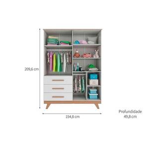 Material dos Cabideiros - Cabideira Metálico Tipo de Dobradiças - Dobradiças Metálicas Quantidade de Portas - 4 Portas de Abrir Tipo de Corrediça - c/ Corrediças Telescópicas Quantidade de Gavetas - 3 Diferenciais das Gavetas - c/ Divisórios Internas Tipo dos Pés - Pés de Madeira Quantidade de Prateleiras - 5