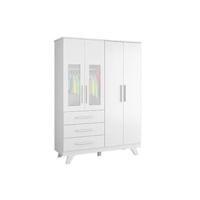 Guarda Roupa Infantil Retrô c/ 4 Portas e 4 Gavetas Branco - Peroba