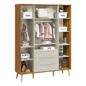 Guarda Roupa Infantil Retrô Elfe Areia Acetinado Savana Natural - Reller