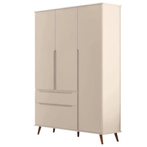 ESPECIFICAÇÕES: Estrutura em MDF Pintura UV 3 Portas Dobradiças metálicas 2 Gavetas Corrediças telescópicas 1 Cabideiro Nichos Maleiro Puxadores embutidos Pés retrô em madeira de eucalipto