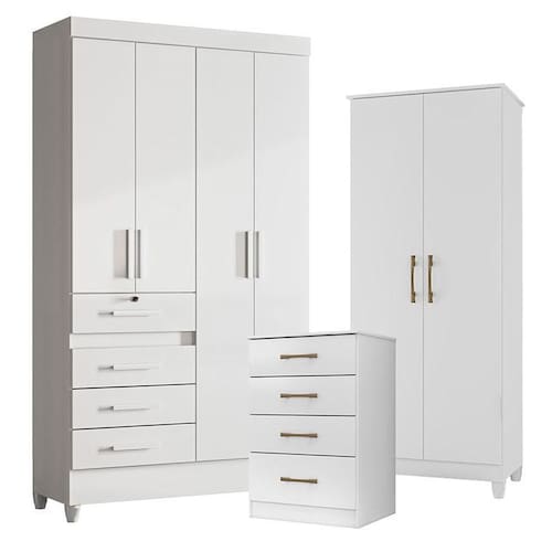 Guarda Roupa Infantil Sobral com Cômoda MS913 e Armário Multiuso Jade Branco Brilho Moval