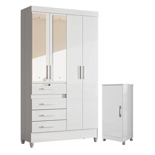 Guarda Roupa Infantil Sobral com Espelho e Armário Multiuso Lírio Branco Brilho Moval