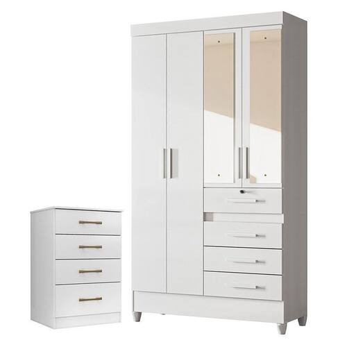 Guarda Roupa Infantil Sobral com Espelho e Cômoda MS913 Branco Brilho Moval