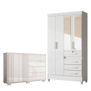 Guarda Roupa Infantil Sobral com Espelho e Cômoda Texas Branco Brilho Moval