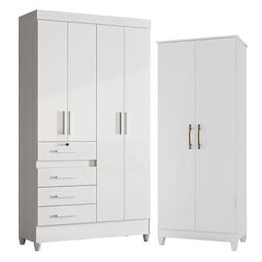 Guarda Roupa Infantil Sobral e Armário Multiuso Jade Branco Brilho – Moval