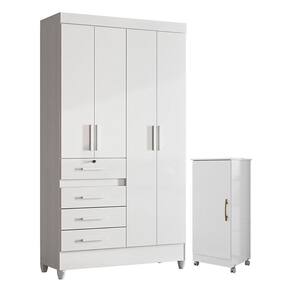 Guarda Roupa Infantil Sobral e Armário Multiuso Lírio Branco Brilho – Moval