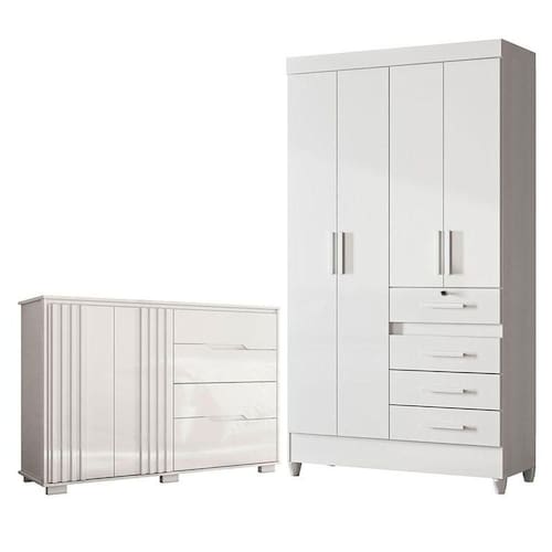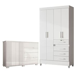 Guarda Roupa Infantil Sobral e Cômoda Texas Branco Brilho Moval