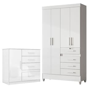 Está querendo renovar seu quarto com o melhor custo benefício do mercado. Apresentamos o Guarda Roupa Infantil Sobral e Cômoda Vênus fabricados pela Moval. Guarda Roupa com um inovador sistema flex com quatro opções de cores na hora da montagem: branco/rosa/azul/lilás, possui 04 portas, 04 gavetas sendo a primeira com fechadura e chave ideal para guardar itens pessoais com segurança, corrediças metálicas, puxadores em MDF, cabideiros em alumínio para melhor organização interna e pés em PVC. A cômoda possui 04 gavetas com corrediças metálicas, 01 porta com detalhes frisados e puxadores em MDF. Fabricado com materiais de alta qualidade que garante resistência e durabilidade ao produto. Confira mais detalhes e aproveite!