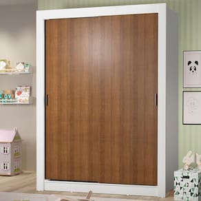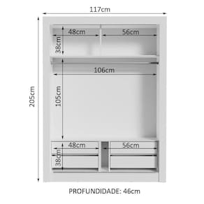 - Itens inclusos: Quatro gavetas com corrediças metálicas | Um cabideiro metálico grande | Duas prateleiras | Três nichos | Duas portas de correr uma de madeira com puxadores em PVC