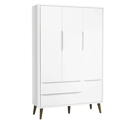 Guarda Roupa Infantil Theo 3 Portas Branco Acetinado com Pés Amadeirado – Reller