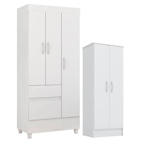 Guarda Roupa Infantil Wind e Armário Multiuso Viena Branco Brilho - Demóbile