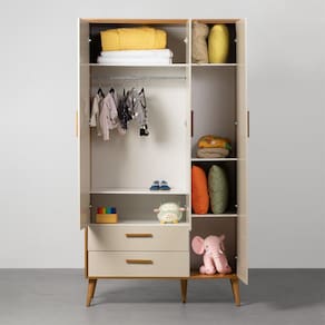 Com o estilo vintage, o Guarda-Roupa Isis 3 Portas e 2 Gavetas vai deixar o quartinho do pequeno com um toque acolhedor. Suas divisórias e cabideiro metálico ajuda a organizar as roupinhas e acessórios com praticidade.