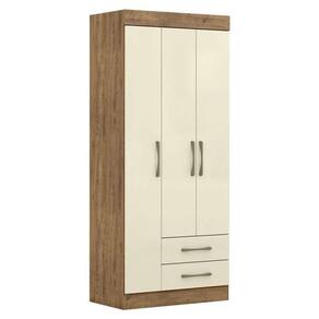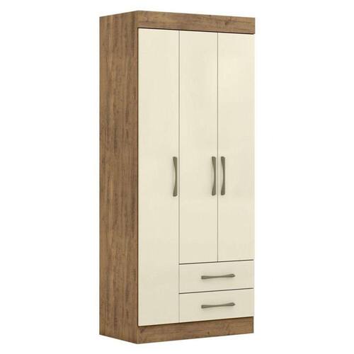 Guarda Roupa Kevin com 3 Portas e 2 Gavetas na Cor Ipê/Off Whiteé perfeito para organização e praticidade, além de dar um toque de modernidade para o quarto.