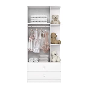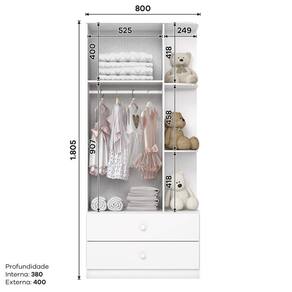 Dimensões: Altura (cm) 180 Largura (cm): 80 Profundidade (cm): 40 Peso (kg): 39 Quantidade de Portas: 2 Quantidade de Gavetas: 2 Material da Dobradiça: Metal Corrediça: Metal Puxador: Abs Branco Cabideiro: Alumínio Pintura: Pintura UV Marca: Henn