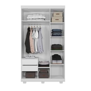 Ele possui 3 Portas em MDF e seu corpo é constituído em 100% MDP. Suas Corrediças telescópicas facilitam e previnem desgastes durante o uso, e os cabideiros metálicos oferecem uma excelente opção para acomodação das suas vestimentas.
