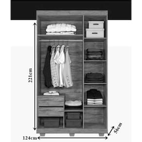Ele possui 3 Portas em MDF e seu corpo é constituído em 100% MDP. Suas Corrediças telescópicas facilitam e previnem desgastes durante o uso, e os cabideiros metálicos oferecem uma excelente opção para acomodação das suas vestimentas.