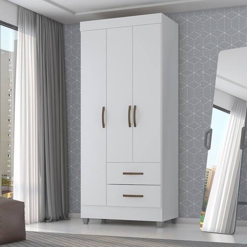 O móvel possui 3 portas convencionais, 2 gavetas externas com sistema de abertura com corrediças metálicas, 4 prateleiras, suportando até 2kg. Acabamento da Prateleira: Pintura UV Escala de Brilho da Prateleira: Semi-Fosco Possui Cabideiros: 01 Acabamento da Gaveta: Pintura UV Escala de Brilho da Gaveta: Semi-Fosco Material do Puxador da Gaveta: PVC Possui Organizador de Gaveta: Não Acabamento da Porta: Pintura UV Escala de Brilho da Porta: Semi-Fosco Material do Puxador da Porta: PVC Altura dos Pés: 7 cm Ambiente Principal: Quarto codigo_ean: 7909903746837 Complexidade da Montagem: Média: pode ser montado por mais de uma pessoa e/ou necessite de maior conhecimento para montagem Cor: Branco Brilho Cor do Produto: Branco Brilho Cor Flex: Não Cor Interna: Branco Brilho Escala de Brilho: Semi-Fosco Gaveta com Chave: Não Itens Inclusos: 1 Guarda Roupa, Kit Ferragens e Manual de Montagem Linha ou Coleção: Linha Lite Manual de Especificação Técnica: https://product-hub-prd.madeiramadeira.com.br/915097/documents/35526b23-621c-41ce-8489-fef5d9455fcd2050998374317183899297145.pdf Manual de Montagem e Instalação: https://product-hub-prd.madeiramadeira.com.br/915097/documents/8fc586ca-c874-44f1-a244-64208173050b2050997374317183899259464.pdf Material da Gaveta: MDP Material da Porta: MDP Material da Prateleira: MDP Material dos Pés: PVC Material Principal: MDP modular: Não Montagem Flex: Não Necessita Montagem: Sim Origem do Produto: Nacional Peso: 37 kg Peso Máximo por Gaveta: 3 kg Peso Máximo por Prateleira: 3 kg Possui Calceiros: Não Possui Espelho: Não Possui Espelho Interno: Não Possui Ganchos: Não Possui iluminação: Não Possui Painel de TV: Não Possui Pés: 04 Possui Portas: Sim Possui Prateleiras: Sim Possui Sapateira: Sim Produto Montado: Sim Quantidade de Gavetas: 02 Gavetas Quantidade de Prateleiras: 04 Prateleiras Recomendações de Uso, Manutenção e Limpeza: Limpeza apenas com um pano úmido. Não utilizar produtos químicos ou abrasivos. Sistema de Montagem: Parafusos, Pregos Suporta Até (kg): 21 kg Tipo de Corrediça da Gaveta: Metálica Simples Tipo de Dobradiça/Corrediça da Porta: Metálica Tipo de Gaveta: Externa Tipo de Guarda-Roupa: Solteiro Tipo de Puxador da Gaveta: Externo Tipo de Puxador da Porta: Externo
