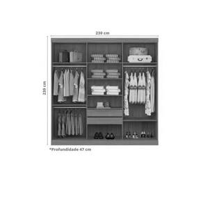 Guarda roupa 06 portas, 02 gavetas internas. Produzido  em MDP 15mm e 12 mm de espessura , proporcionando resistência e durabilidade. Amplo espaço interno, garantindo maior firmeza ao móvel.  Puxadores de MDF 25mm, cabideiro de madeira dando maior resistência. Gaveta ampla com melhor fixação, proporcionando maior conforto e comodidade em guardar roupas sem amassar e puxar fios. Corrediça metálica oferecendo durabilidade e um melhor deslize ao abrir e fechar as gavetas. Acabamento texturizado, garantindo a conservação