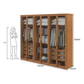 Guarda Roupa Lopas 06 Portas Vidro Solaris Amendoa Clean Um dormitorio bem organizado pede um movel pratico e dinamico. Internamente, o Guarda-roupa Solaris conta com nichos em diferentes tamanhos, alem de gavetas e cabideiros que permitem acomodar tudo em um so lugar. Seu externo, por sua vez, eleva a modernidade e a beleza do comodo Caracteristicas: Opcionais 02 ou 06 Portas c/Vidro Fume Produto em MDF com chapas de 15/18/25mm Pintura U.V. e acabamento em micro textura Puxadores em MDF com 1,050x18mm Conjunto Perfil Div. gaveta 55 MM CHAMPAGNE 06 portas com dobradica TN MS SLOW Curva Calco Fixo 35mm Interno diferenciado com 08 prateleiras Maleiro individual Gavetas com corredicas telescopicas Gavetas com distanciadores em MDF Kit Led 4 Perfis 2130mm Espaco para sapatos.