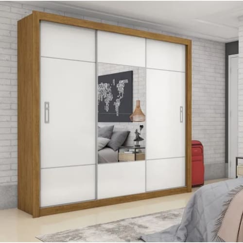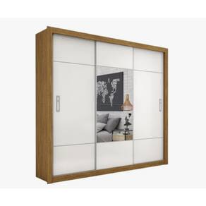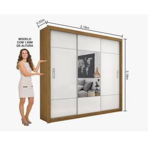 Especificações - medidas produto montado: 218 (a) x 216 (l) x 52 (c) cm; - material: mdp; - acabamento: pintura uv; - possui porta: 3; - tipo de porta: correr; - possui prateleiras: 6 internas; - possui gavetas: 4; - corrediças: metálicas; - possui cabideiro: sim 2;