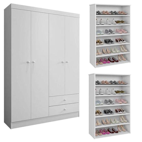 Móveis para o quarto com qualidade e bom preço você encontra aqui, apresentamos mais uma ótima opção Guarda Roupa Louise e Sapateira Laís Branco Brilho desenvolvidos pela AJL possuem amplo espaço, ótima repartição interna, e lindo design tudo para deixar o quarto infantil organizado com total praticidade e conforto. Esse combo acompanha 01 Guarda Roupas e 02 Sapateiras. Aproveite!