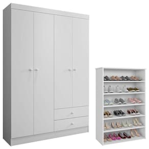 Guarda Roupa Louise e Sapateira Laís Branco Brilho - AJL