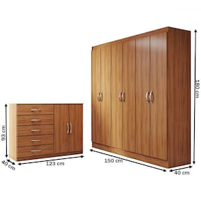 O(a) Guarda-Roupa Luna 6 Portas 2 Gavetas com Cômoda 2 Portas 5 Gavetas Cinamomo - Loja é produzido em MDP na escala de brilho Brilho e Semi-Brilho, e possui um grau de dificuldade de montagem: Médio.