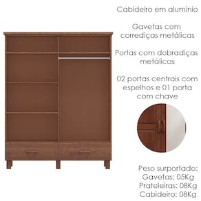 Peso Suportado: 08Kg prateleira, 05Kg gaveta, 08Kg cabideiro