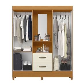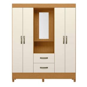 Guarda Roupa Malibu 4 Portas 2 Gavetas Com Espelho Albatroz Cinamomo/off White - Int Bca