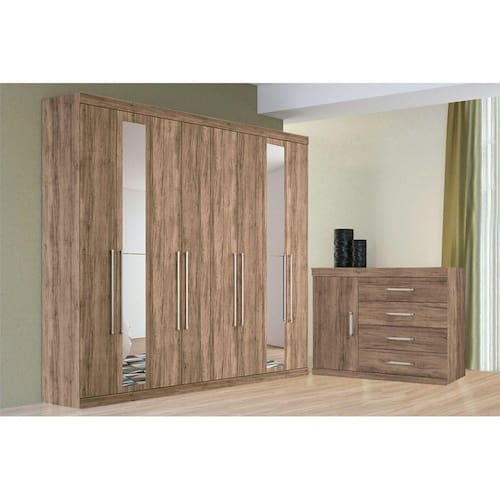 Guarda Roupa Master 8.4 c/ Espelho + Cômoda Master 1.4 Atacama - Santos Andirá