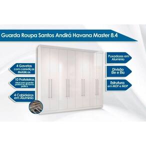 Abaixo segue os produtos do KIT: Guarda Roupa Master 8.4 + Cômoda Master 2.4 Branco - Santos Andirá