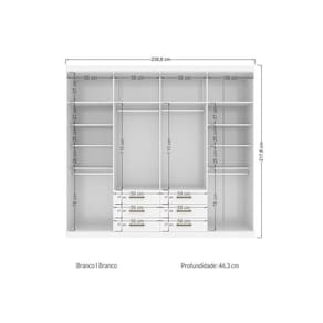Dimensões(Cm): Comprimento(Profundidade): 46cm x Largura: 239cm x Altura: 218cm