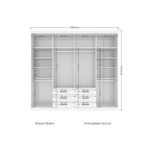 Dimensões(Cm): Comprimento(Profundidade): 46,30cm x Largura: 238,80cm x Altura: 217,60cm