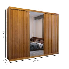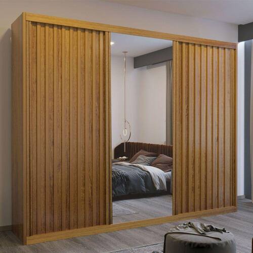 Características: Marca: Bom Pastor Modelo: Maximus Confeccionado em 100 MDF 3 Portas de correr 8 Gavetas com corrediças telescópicas Espaço para roupas longa Trilho inferior em alumínio Colunas laterais -25mm- Espelho com película de segurança Roldanas reguláveis com molas Divisão interna ele/ela