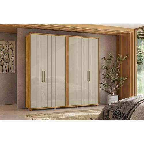 O Guarda-roupa Miró destaca-se por seu design sofisticado e funcionalidade inteligente. Suas portas com ripado angular conferem um visual moderno e marcante, ideal para ambientes que valorizam elegância e personalidade. O grande diferencial está nos cabideiros extensíveis, que facilitam o acesso e a organização das roupas, otimizando o espaço interno com praticidade no dia a dia.