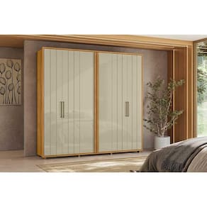 O Guarda-roupa Miró destaca-se por seu design sofisticado e funcionalidade inteligente. Suas portas com ripado angular conferem um visual moderno e marcante, ideal para ambientes que valorizam elegância e personalidade. O grande diferencial está nos cabideiros extensíveis, que facilitam o acesso e a organização das roupas, otimizando o espaço interno com praticidade no dia a dia.