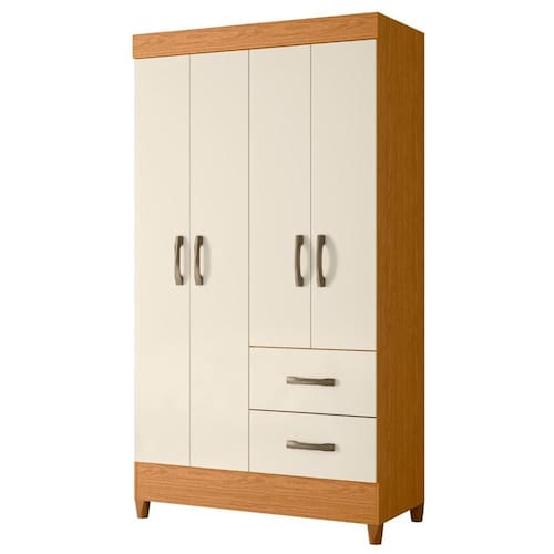 ESPECIFICAÇÕES: Estrutura em MDP Pintura UV 4 Portas Dobradiça metálica 2 Gavetas Corrediças metálicas Puxadores em ABS Cabideiro em madeira revestida Pés em ABS