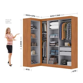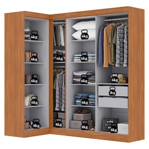 Esta modulação conta com um Canto Paris 2 portas e um Paris 4 portas, ambos com amplo espaço interno, muito bem distribuído com prateleiras para melhor aproveitamento, cabideiros em madeira e uma estrutura versátil que acomoda roupas longas.