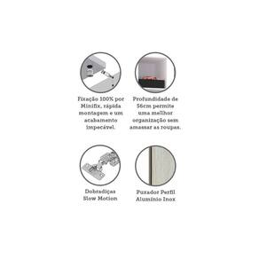 O Guarda Roupa Modulado Prime foi desenvolvido se adequando a vários espaços, de grandes a pequenos. Possui 236 cm de altura oferece divisórias para atender diversas necessidades, profundidade de 56cm possibilitando acomodar roupas sem amassar. Produzido em MDP de 15mm, dobradiças Slowmotin reforçadas em 35mm, a montagem é inteira por minifix que proporciona um acabamento impecável e fundos embutidos com perfil usinado para melhor acabamento e maior resistência.