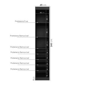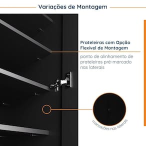O Guarda Roupa Modular de 1 porta reflecta Hera CabeCasa foi desenvolvido para trazer a experiência de ter seu móvel customizado de acordo com a necessidade do seu espaço. O móvel conta com 2 kits com 3 prateleiras cada e um cabideiro que podem ser ajustados conforme a pré marcação na caixaria, evitando assim problemas para nivelamento dos mesmos. Acabamento da Porta: Finish Foil Acabamento da Prateleira: Pintura Acabamento dos Pés: Pintura Altura dos Pés: 8 cm Ambiente Principal: Quarto Complexidade da Montagem: Média: pode ser montado por mais de uma pessoa e/ou necessite de maior conhecimento para montagem Composição: Maior parte MDP Cor: Preto Cor do Produto: Preto Cor Interna: Preto Escala de Brilho: Semi-Fosco Espessura do Material da Estrutura: 15 mm Espessura do Vidro: mm Informações Complementares: Puxador Metálico Preto Industrial, portas em vidro Reflecta com dobradiças com amortecimento, fundos em 6mm, cabideiro em aço cromado suportando até 10kg e Maleiro até 25kg. Itens Inclusos: 1 Guarda Roupa, Manual de Montagem e Kit Ferragens Linha ou Coleção: Hera Manual de Montagem e Instalação: https://cdn2.madeiramadeira.com.br/atributo/herval-edez-rs/1666326-1233689-hera-modulo-roupeiro-1p.pdf Material da Porta: MDF Material da Prateleira: MDP Material dos Pés: MDP Material Principal: MDP Montagem Flex: A porta pode ser montada com abertura para esquerda ou direita Necessita Montagem: Sim O Módulo Pode ser utilizado individualmente: Sim Origem do Produto: Nacional Pés Reguláveis: Não Peso: 75 kg Peso Máximo por Prateleira: 10 kg Possui Espelho: Não Possui Pés: Rodapé Possui Portas: 01 Possui Prateleiras: 06 Possui Rodízio: Não Recomendações de Uso, Manutenção e Limpeza: A limpeza deve ser realizada com um pano limpo e seco Sapatas Niveladoras: Sim Sistema de Montagem: Parafusos, minifix e Cavilhas. Tipo de Dobradiça/Corrediça da Porta: Metálica Tipo de Guarda-Roupa: Solteiro Tipo de Módulo: Guarda-Roupa Tipo de Puxador da Porta: Externo Ean: 7909903486955