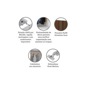 O Guarda Roupa Modulado Prime foi desenvolvido se adequando a vários espaços, de grandes a pequenos. Possui 236 cm de altura oferece divisórias para atender diversas necessidades, profundidade de 56cm possibilitando acomodar roupas sem amassar. Produzido em MDP de 15mm, dobradiças Slowmotin reforçadas em 35mm, a montagem é inteira por minifix que proporciona um acabamento impecável e fundos embutidos com perfil usinado para melhor acabamento e maior resistência.