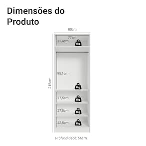 O espelho integrado amplia a sensação de espaço no ambiente e facilita a rotina. Conta com quatro prateleiras bem distribuídas e um cabideiro, oferecendo espaço para manter tudo sempre organizado.