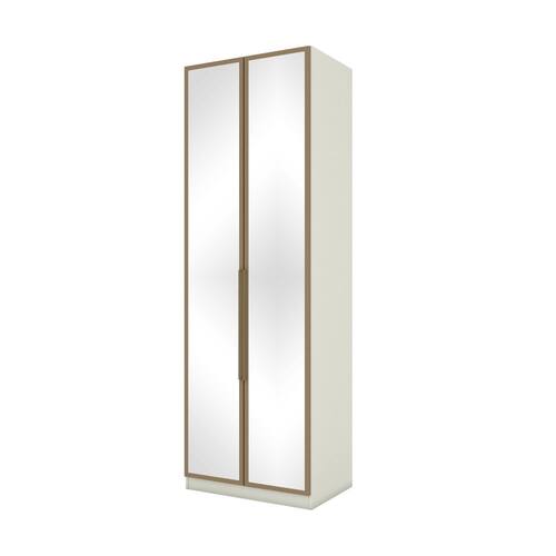 O guarda roupa modulado tem 2 portas com espelho, une design e funcionalidade. O modulo e Flex e tem duas opcoes de montagem interna, opcao 1 - 5 prateleiras, opcao 2 - 2 cabideiros e 1 prateleira. A linha predileto foi desenvolvida para possibilitar varias opcoes de montagens e atender diversas necessidades de espaco, oferecendo mais praticidade no seu dia a dia, e compacto e bem planejado, perfeito para a organizacao, deixando o ambiente ainda mais aconchegante e sofisticado.